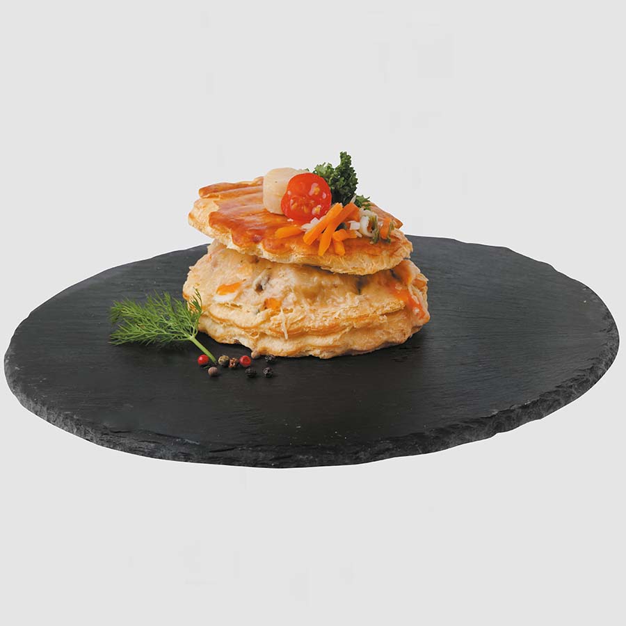 Ce feuilleté associe la finesse des noix de Saint-Jacques à un mélange de petits légumes savoureux, le tout enveloppé dans une pâte feuilletée dorée à souhait.
