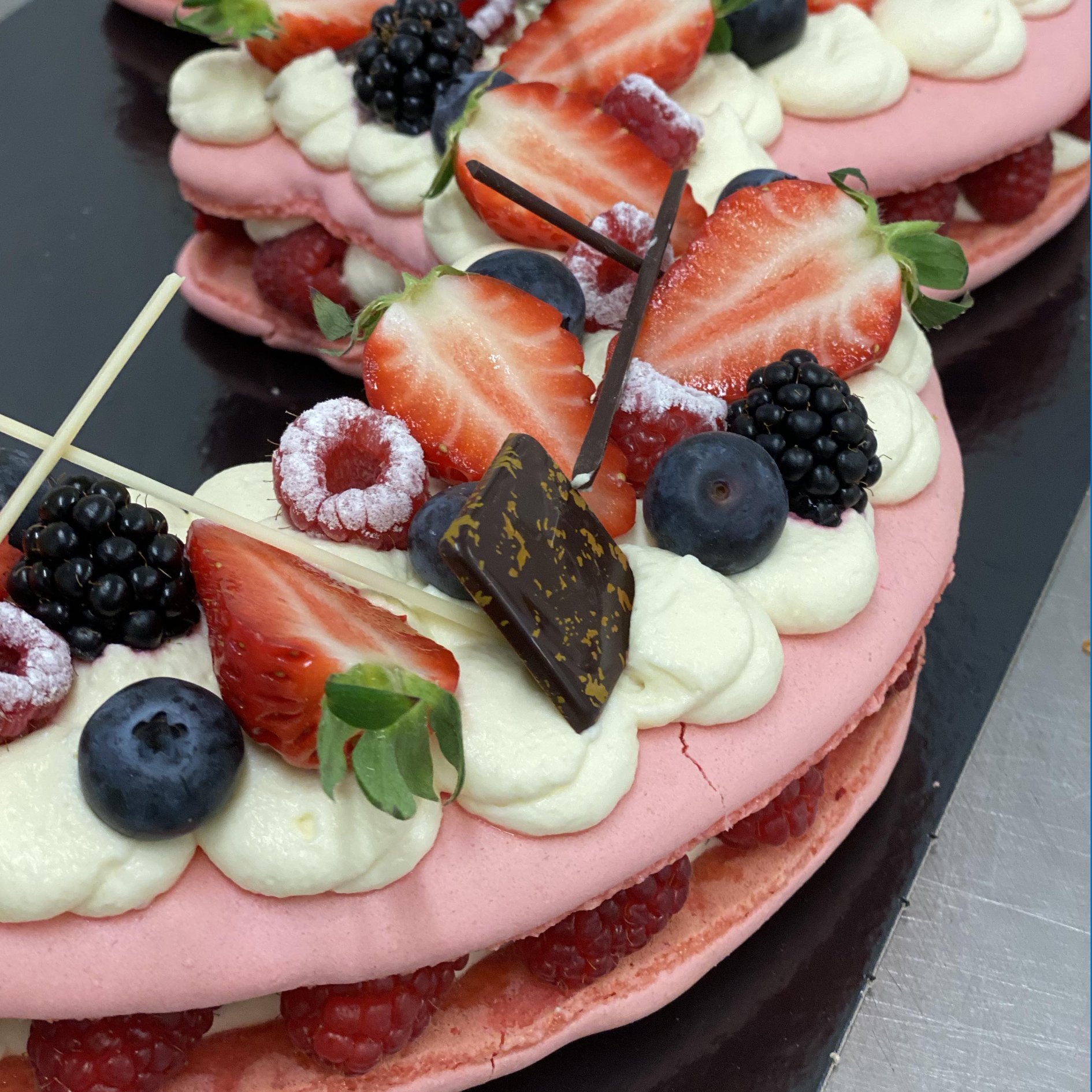 Fraise/pistache ou framboise/citron ou vanille/fraise ou passion/framboise ou chocolat/praliné ou chocolat/vanille